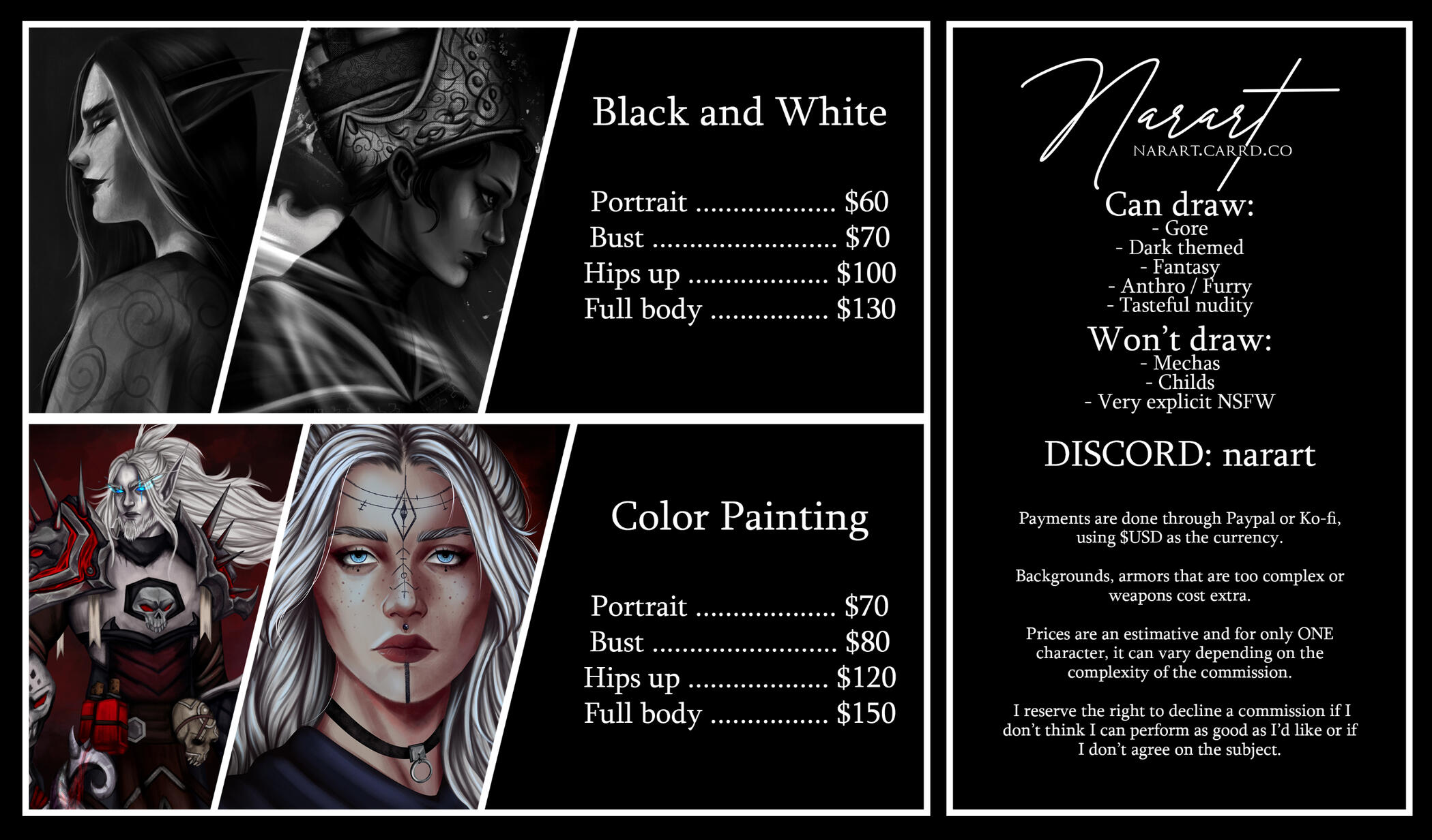 ▼ Commissions are non-refundable. Please remember that if the work has already started it’s time, energy and resources that I’ve already used.╚ ——————————————— ╝╔ ——————————————— ╗How do I work?Please describe your desired outcome clearly, providing as much information as you can. Be clear with the direction you want so I can work around it.